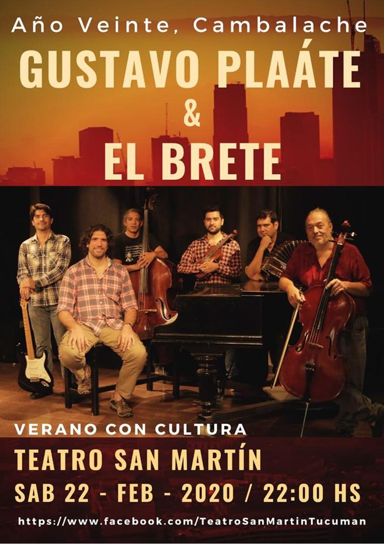 Dentro del marco del Verano con Cultura, los tucumanos podrán disfrutar el espectáculo “Año 20, Cambalache”, un recital a cargo del Quinteto El Brete y el violonchelista Gustavo Pláate. Los músicos harán un recorrido por los tangos más representativos de todas las épocas, desde Carlos Gardel hasta Astor Piazzolla. También interpretarán un concierto de piano con aires folclóricos del pianista y compositor Mauricio Martínez Zuccardi. Fundado en 2016, el quinteto El Brete está integrado por Jesús Canaviri en bandoneón, Augusto Agüero en violín, Mauricio Martínez Zuccardi en piano, Edgardo Mendoza en guitarras y Matthias Agüero Hinz en contrabajo. Unidos por la inquietud de interpretar el repertorio original de Astor Piazzolla, se abrieron camino rápidamente en el ámbito artístico y las principales salas y teatros.