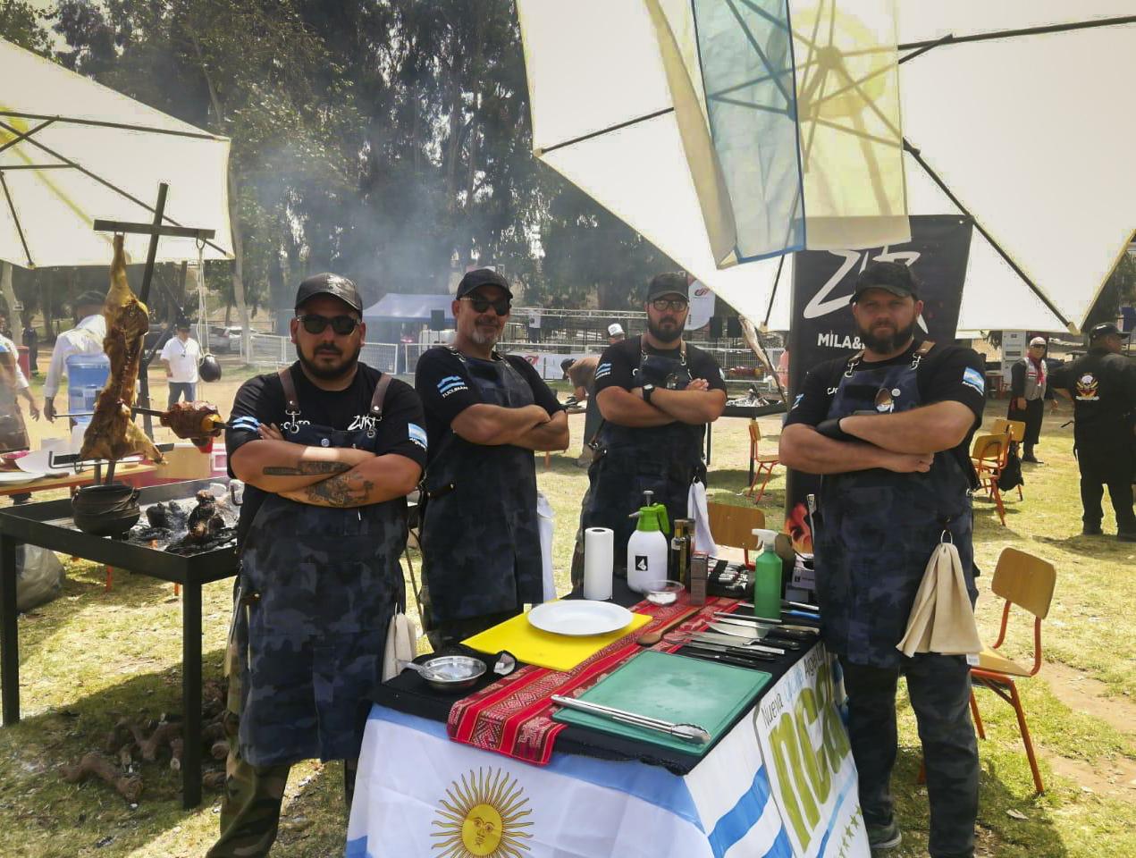 El equipo de Zur, los asadores tucumanos que salieron primeros en la categoría Cerdo, en La Serena, Chile. Foto gentileza Zur asadores.