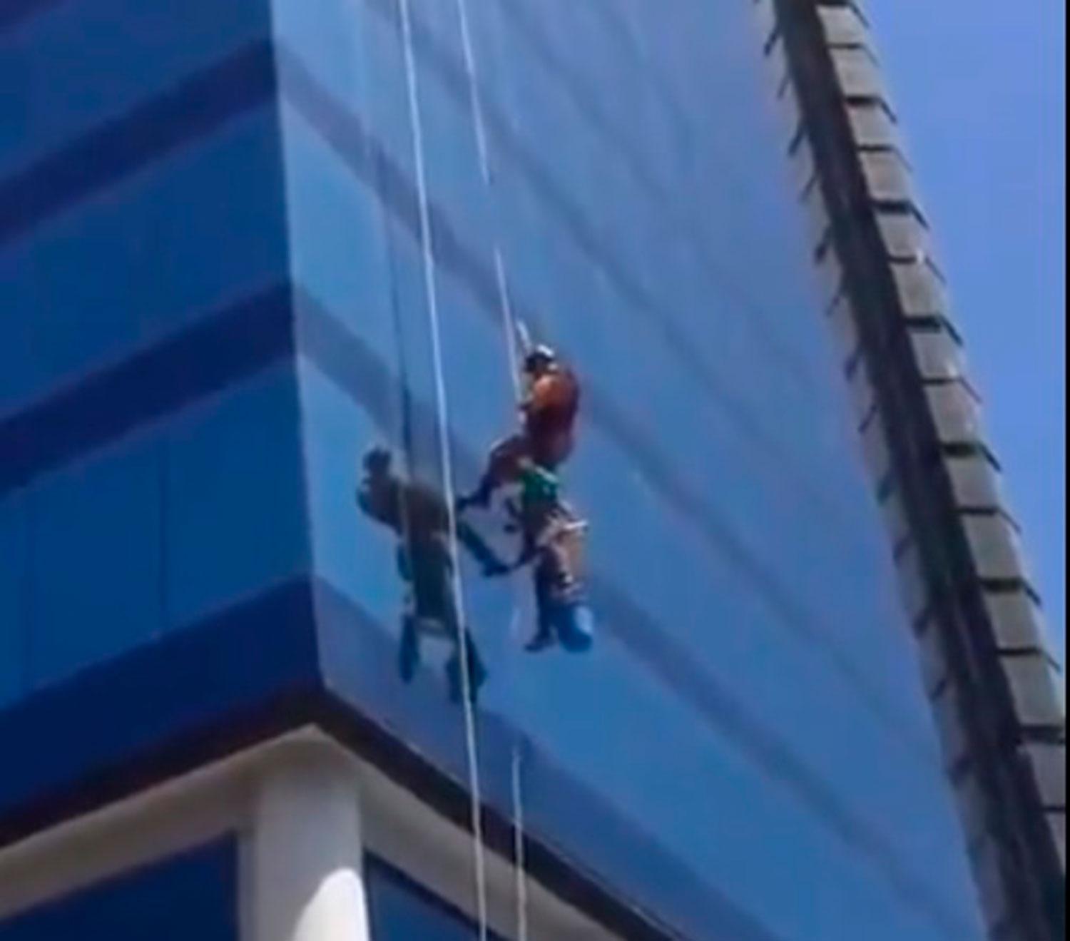 Un hombre que trabaja de limpiavidrios quedó colgando de una torre en Puerto Madero, con peligro de caer al vacío, y tuvo que ser rescatado por los bomberos de la Ciudad de Buenos Aires, informaron fuentes del gobierno porteño.