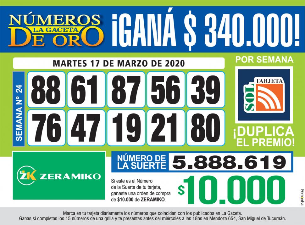 Esta es la grilla completa de los Números de Oro de LA GACETA del 24 de diciembre de 2025