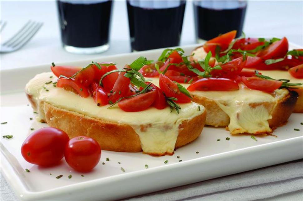 Ingredientes: 1 baguette, 2 dientes de ajo, 1/2 taza de aceite de oliva, 3 tomates perita maduros, 1 atado de albahaca, 100 gramos de queso mozzarella, sal y pimienta.