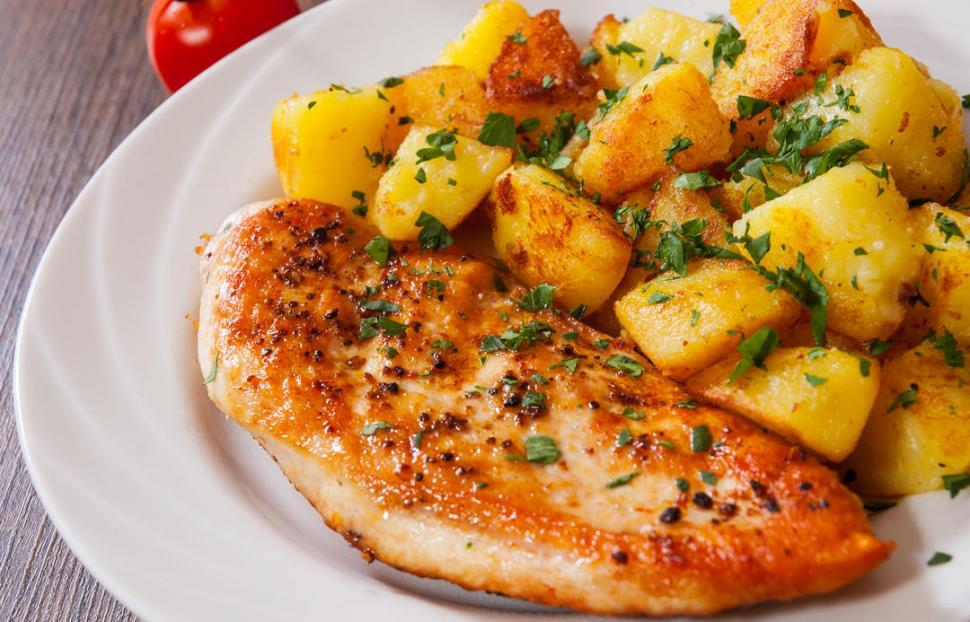 Preparación: colocar la manteca y el aceite en un sartén, agregar la papa en cubos y la cebolla en tiras. Adicionar las pechugas. Ir agregando miel, mostaza, sal y pimienta. Tapar y dejar cocinar a fuego bajo durante 20 minutos. Pasado este tiempo, servir y agregar el perejil picado a modo de decoración. Listo para degustar.