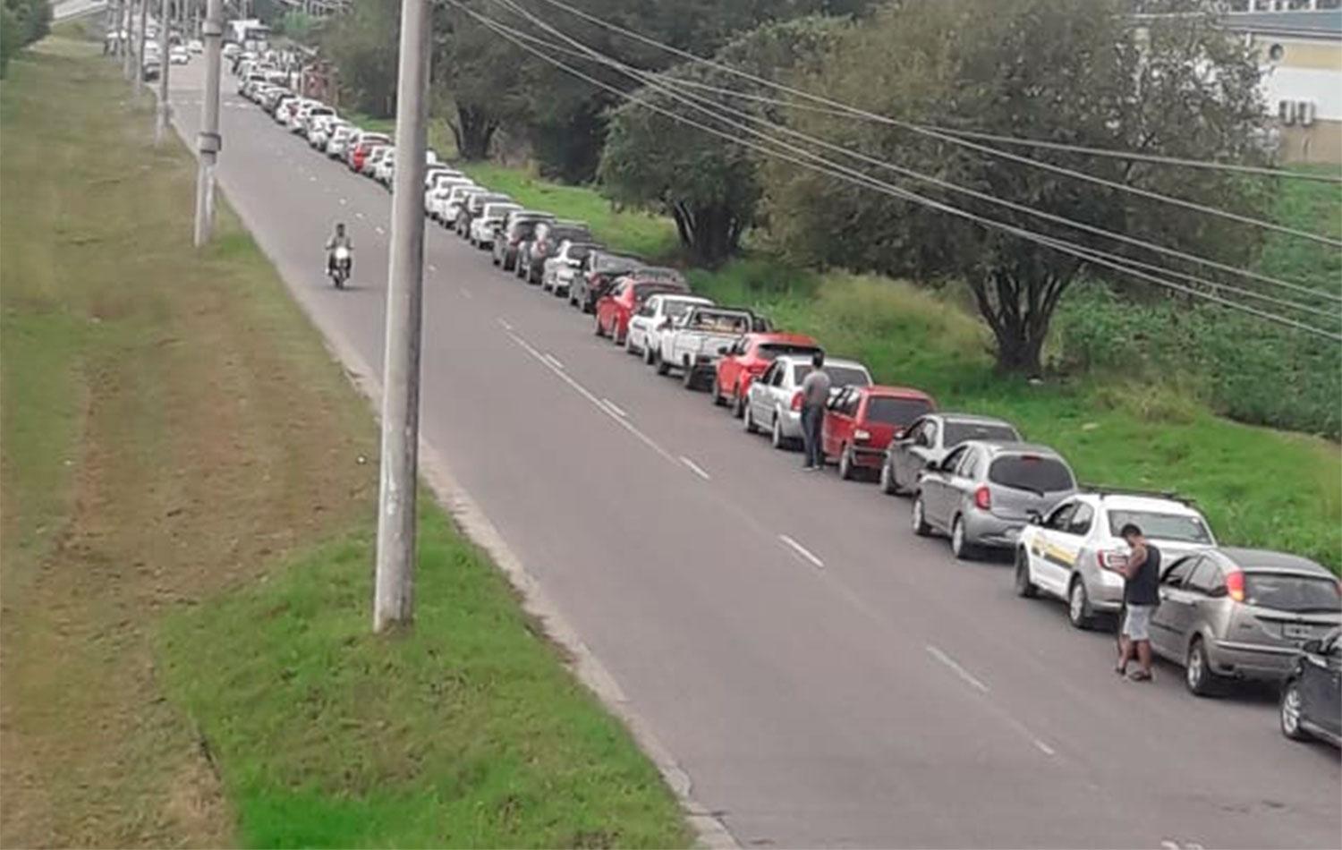 Esta mañana, casi dos kilómetros de fila de autos para entrar a un supermercado mayorista