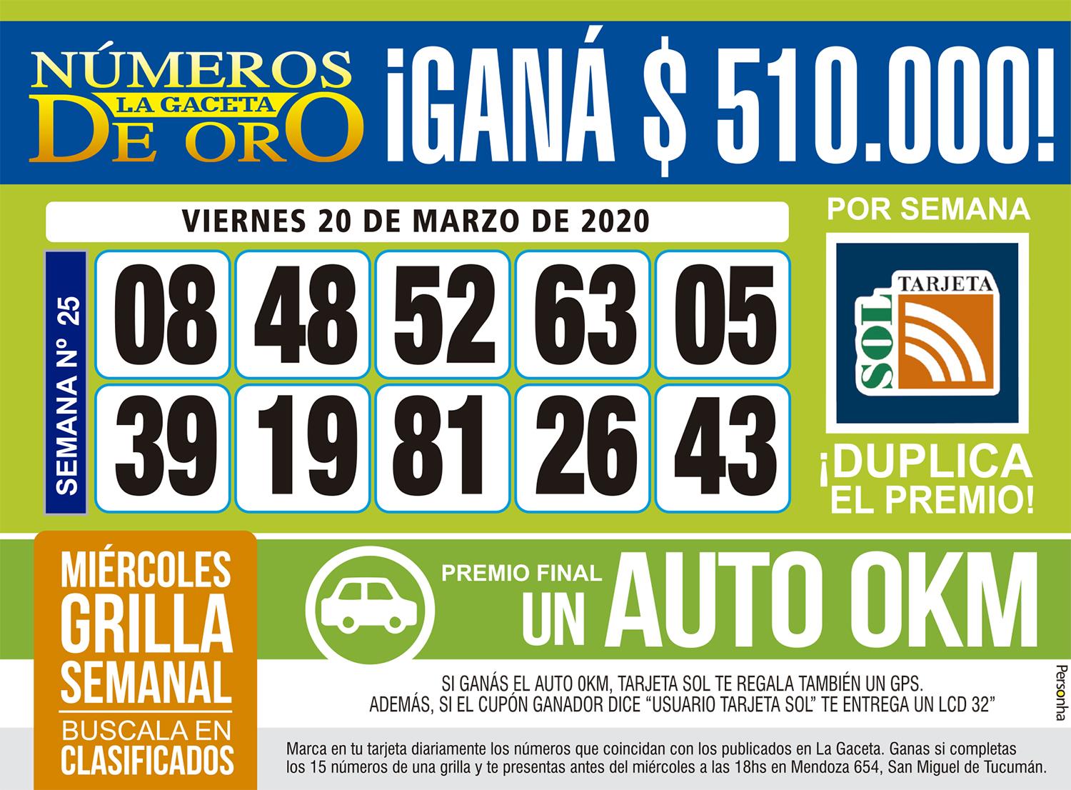 Esta es la grilla completa de los Números de Oro de LA GACETA del 24 de diciembre de 2025