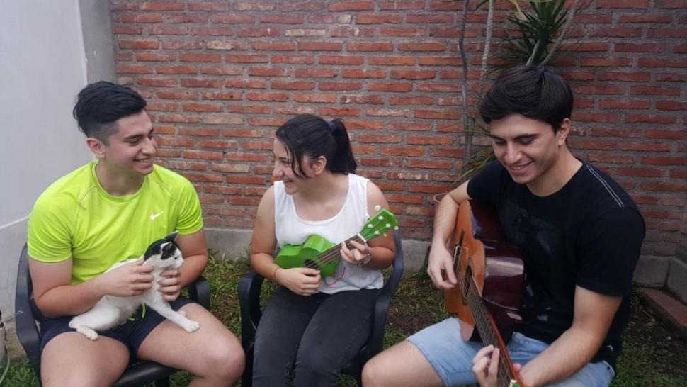 ARMONÍA. Ninguno se lleva mal, afirmó Murillo. Lucas, Leyla y Nahuel cantan afinados. Nisa, la gata, y Linda, la perra, conviven sin problemas en la casa.