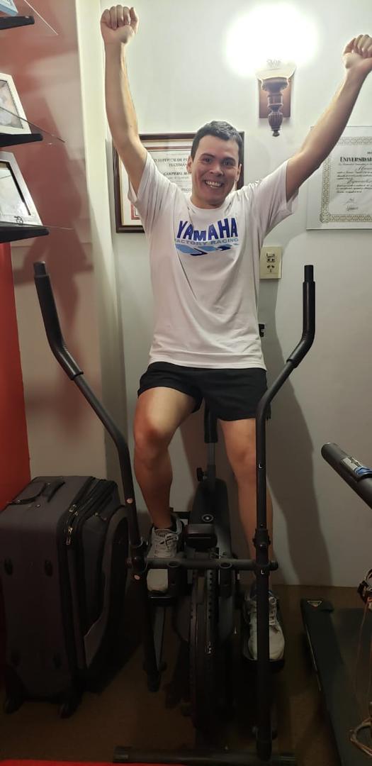 Montar el gimnasio en el entrepiso del hogar le dejó una que otra enseñanza generada también por la realidad. “Encontré un viejo equipo de mi papá que él usaba cuando era joven. Estaba guardado en una especie de ático. Me quedé sorprendido: algunos accesorios tienen como 30 años y no puedo creer que sigan sirviendo”, reveló Guevara que también mantiene “cuarentena” con la moto por unos meses más obedeciendo a los médicos. “Hoy estás acostumbrado a que las cosas no te duren un año”, reconoció.
