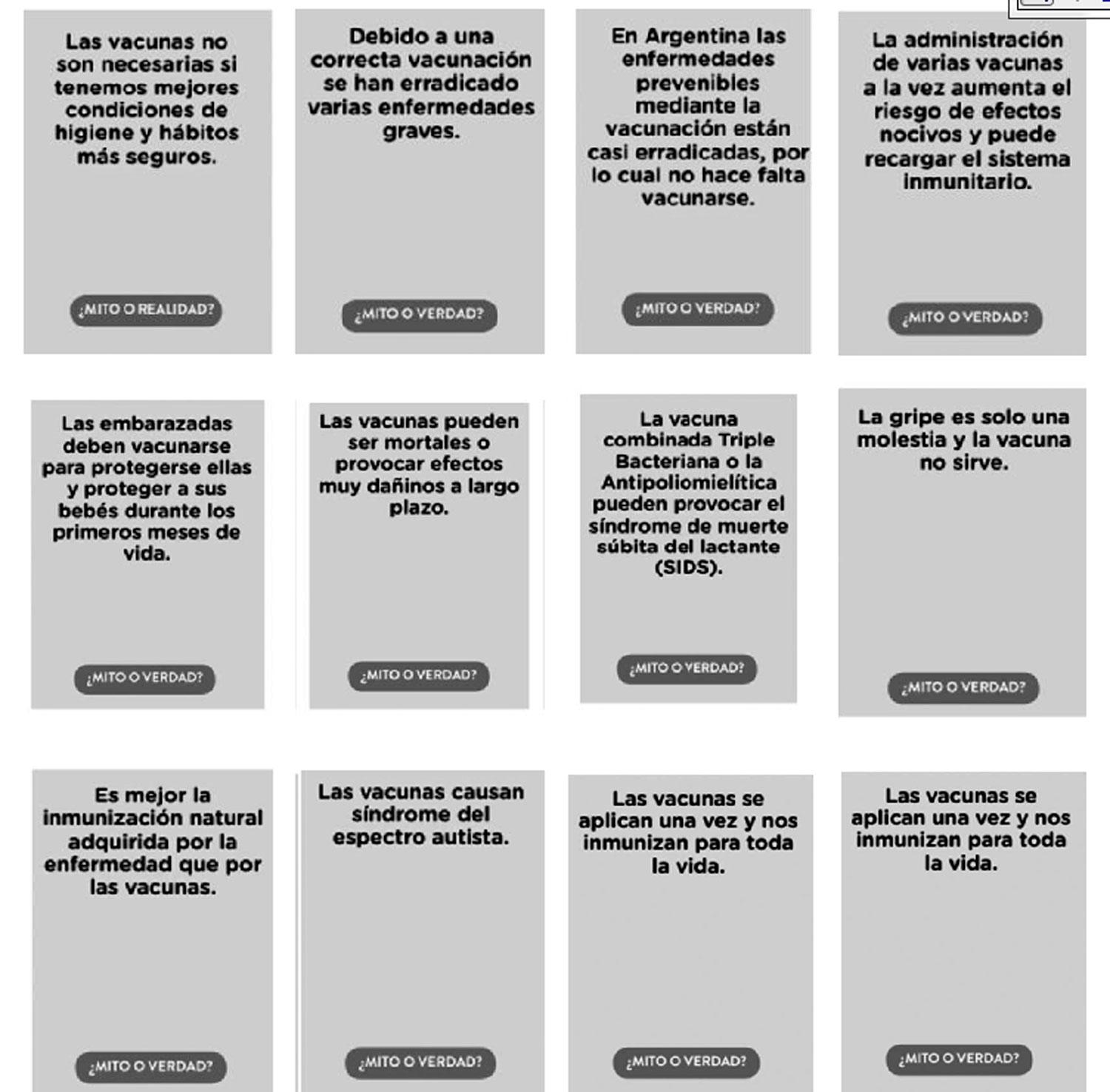 • Un equipo por vez deberá leer la afirmación que tiene la tarjeta que le tocó y decidir si se trata de un mito o una verdad. Si lo hacen correctamente, ganan un punto.