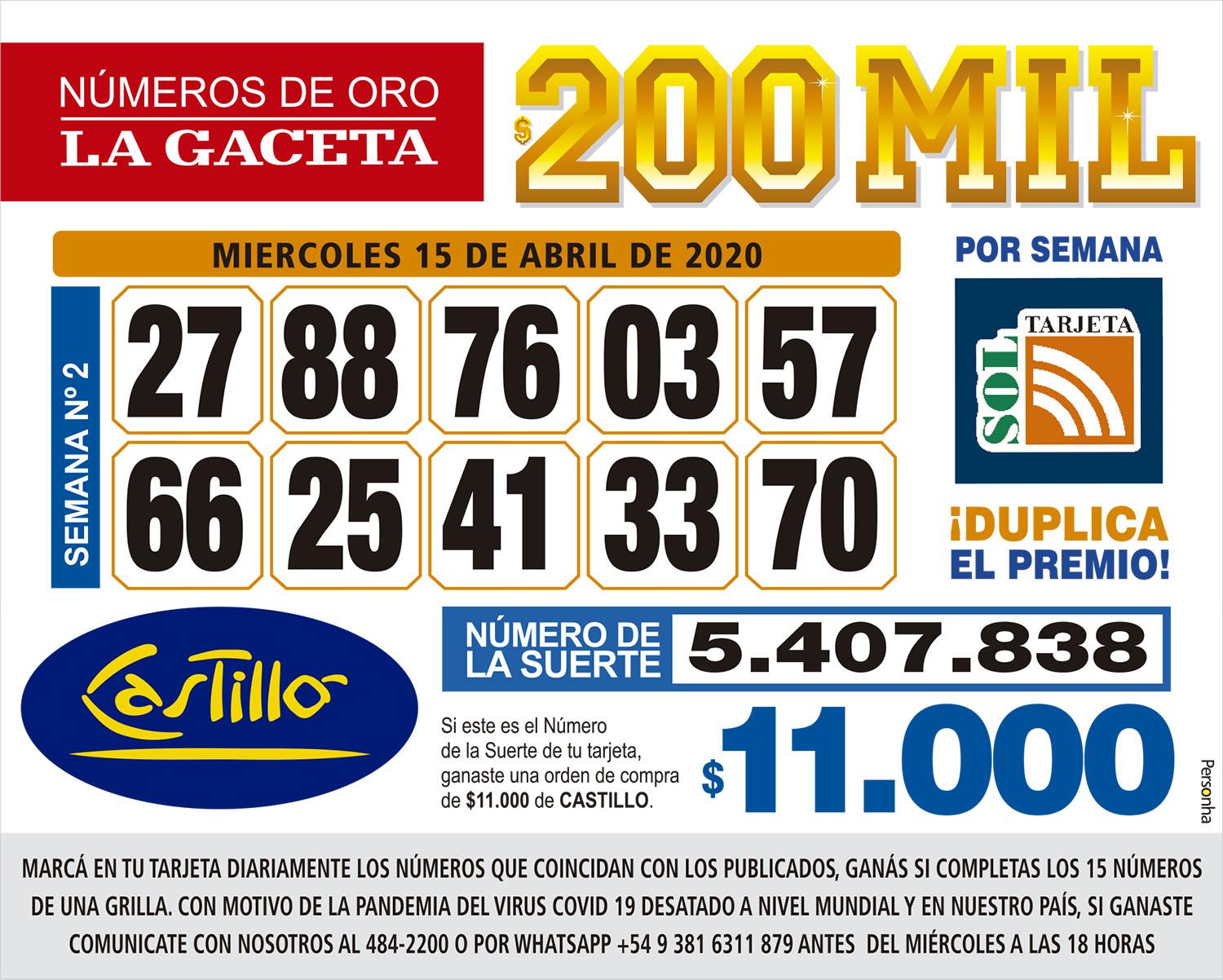 Esta es la grilla completa de los Números de Oro de LA GACETA del 24 de diciembre de 2025