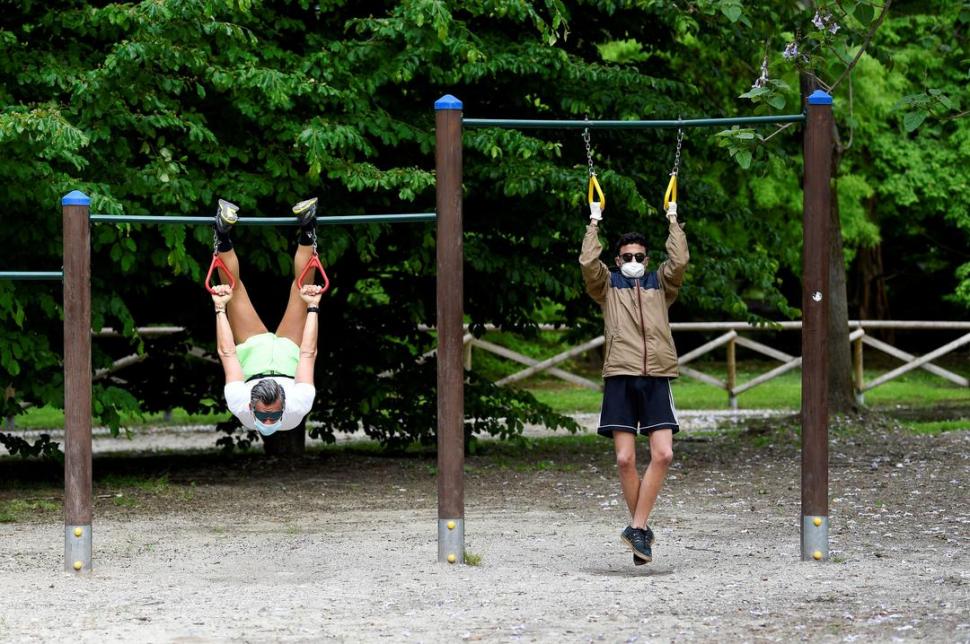 CUIDADOS. Los espacios verdes de Milán se llenaron de deportistas. reuters