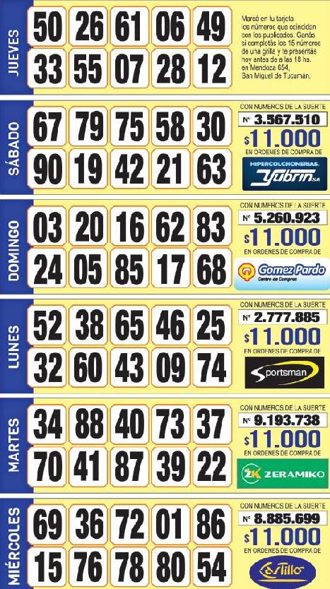 ¡Mucha suerte! Esta es la grilla completa de los Números de Oro