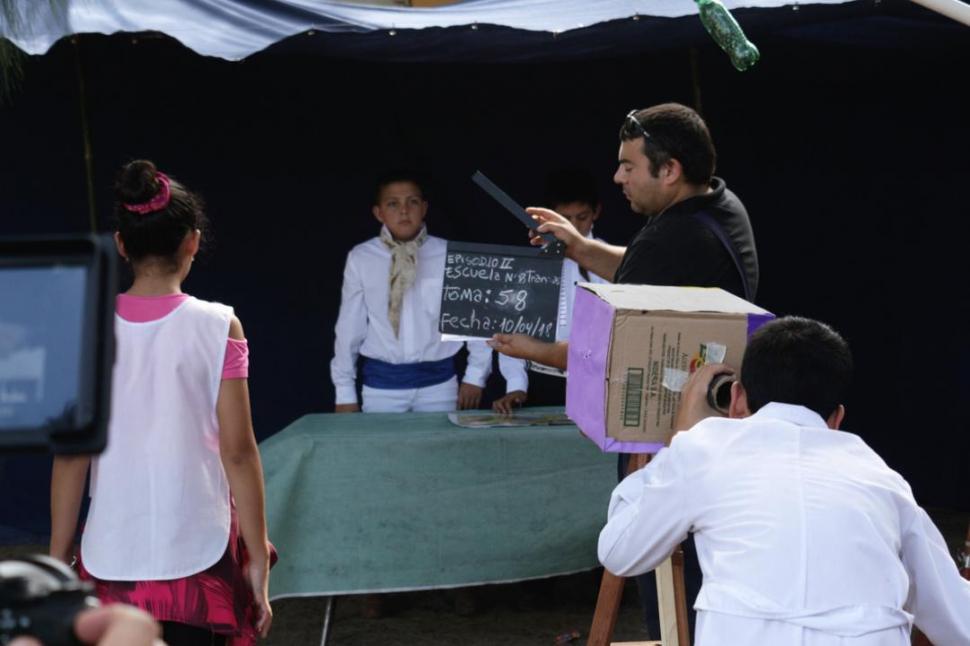 EN TRANCAS. Los alumnos de una escuela debieron improvisar las cámaras para rodar un cortometraje.