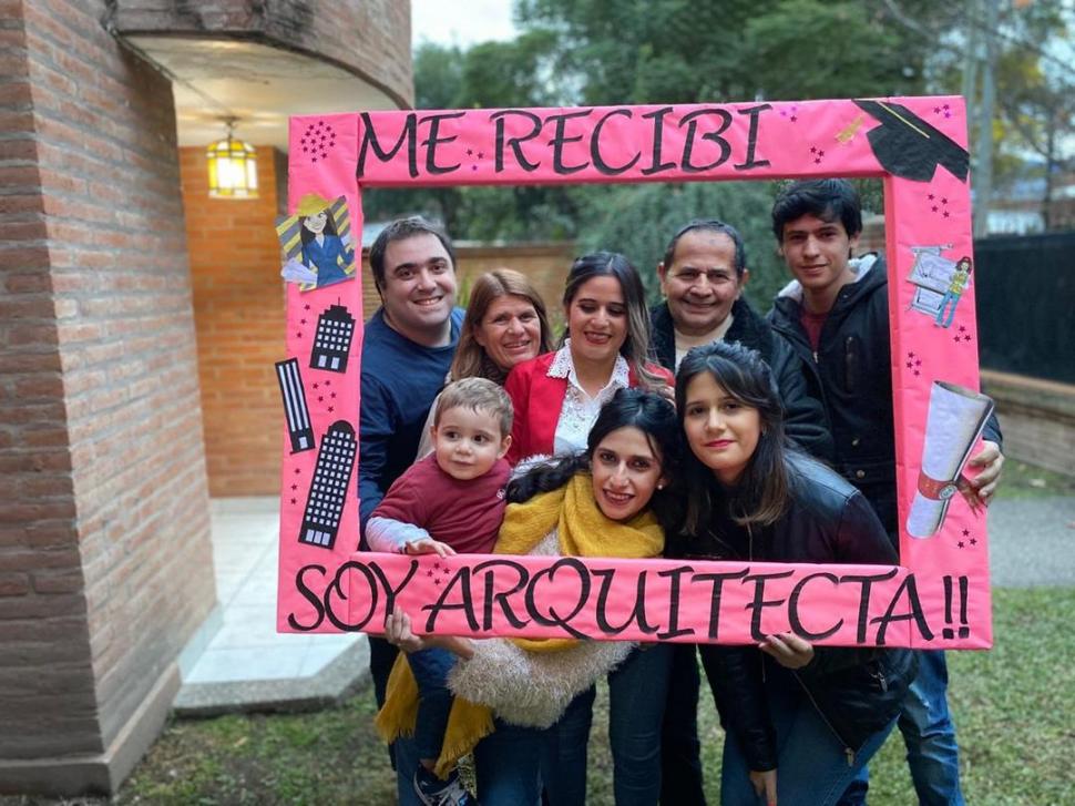 Hizo la presentación desde su casa, y también allí festejó con ocho de sus familiares más cercanos, para no exceder la cantidad permitida de asistentes por las regulaciones. Luego, sus amigos la acompañaron con una caravana de autos que paseó por la capital anunciando la recibida entre clásicos bocinazos.