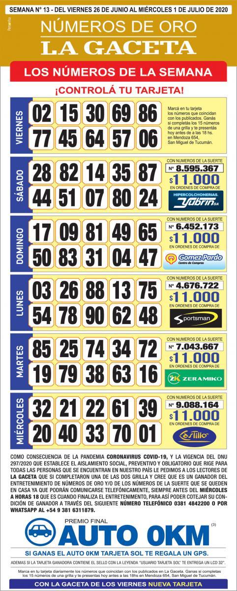 ¡Mucha suerte! Esta es la grilla completa de los Números de Oro