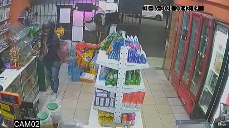 En una de las filmaciones se observa al sospechoso que ingresa a uno de los negocios simulando ser un cliente. El ladrón, de un momento a otro, saca un arma y apunta al empleado pidiéndole el dinero. El robo duró apenas un minuto.