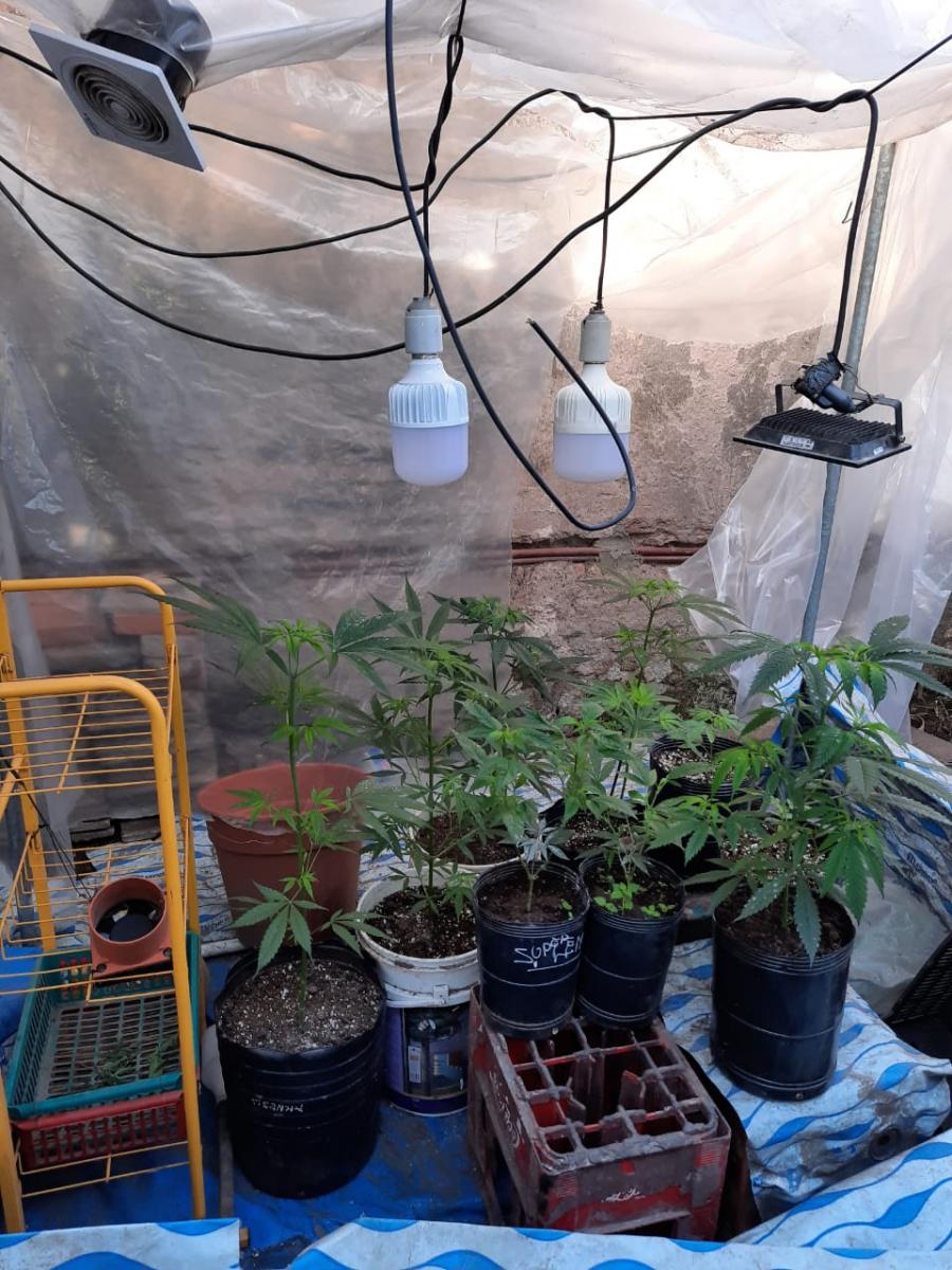 Los plantines de marihuana estaban ubicados en macetas y otras habían sido metidas ya en la tierra. Permanecían en el patio de la vivienda del suroeste de la capital, cubiertas por plástico y focos led utilizados para generar una temperatura adecuada. Ayer, un equipo de policías se topó con este espacio de cultivo durante un allanamiento. Los agentes habían ido hasta allí en busca de armas de fuego u cualquier elemento por una causa de robo a gravado.