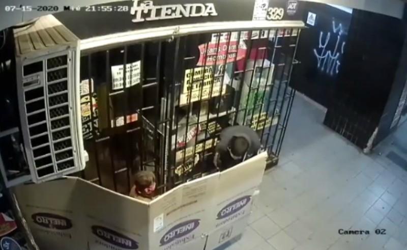 Las rejas y los candados no los alejaron del intento. Dos delincuentes quisieron robar un kiosco céntrico, pero no lo lograron. A pesar de usar una caja de cartón para que no se los identifique, el momento quedó registrado en las cámaras de seguridad del lugar.