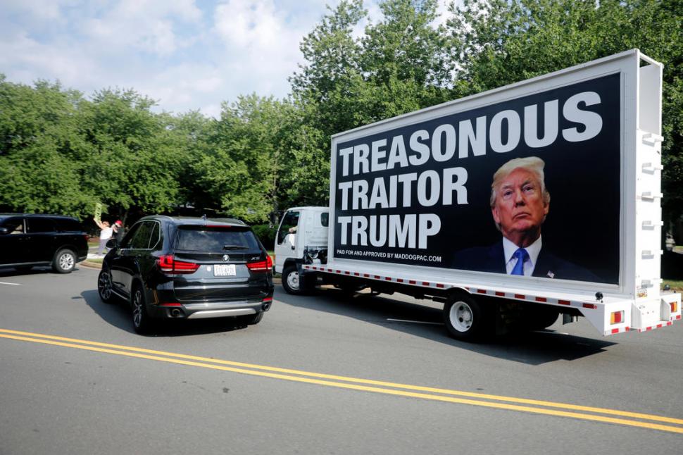 CARTEL. “Trump traidor”, se lee frente al club de golf del presidente.