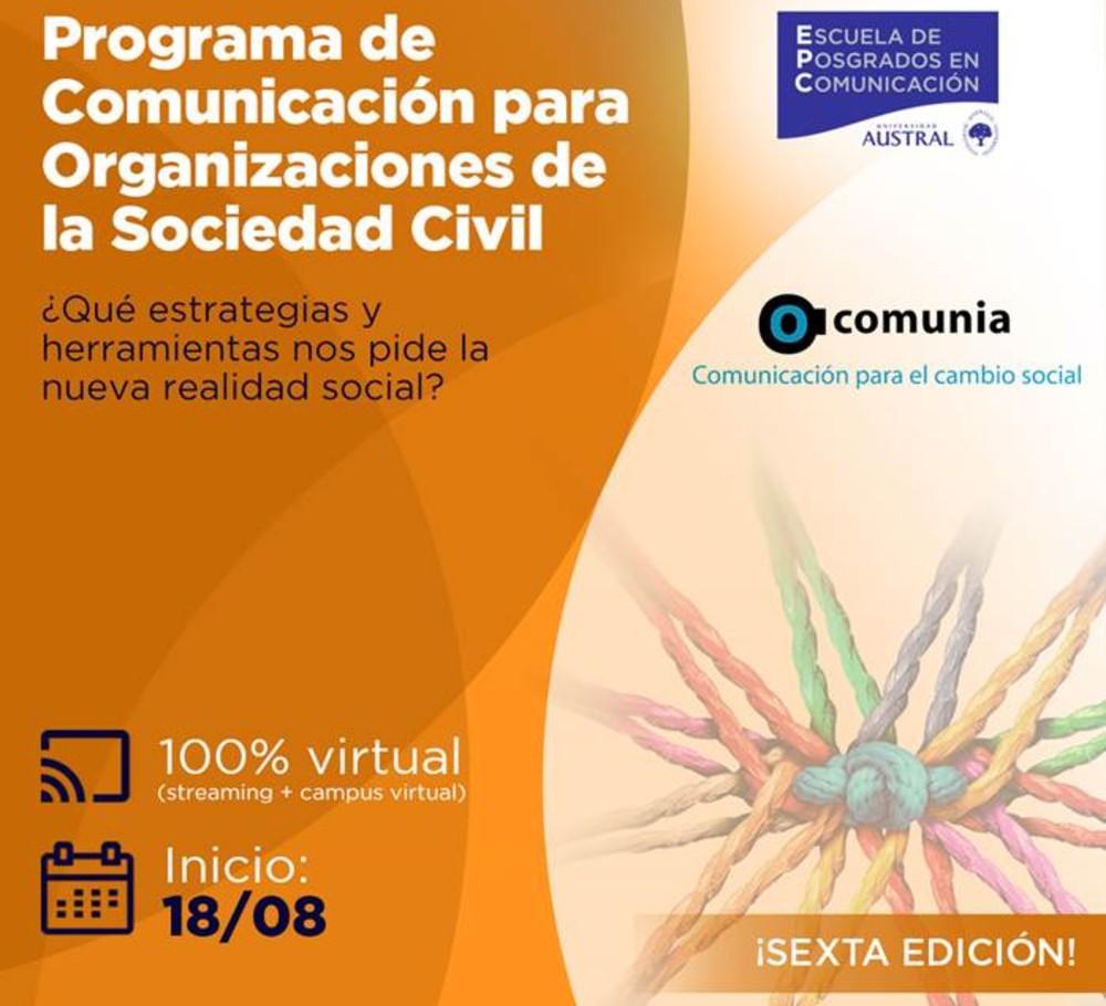 Comunia Asociación Civil y la Escuela de Posgrados en Comunicación de la Universidad Austral ofrecen una oportunidad para capacitarse a las organizaciones sociales.