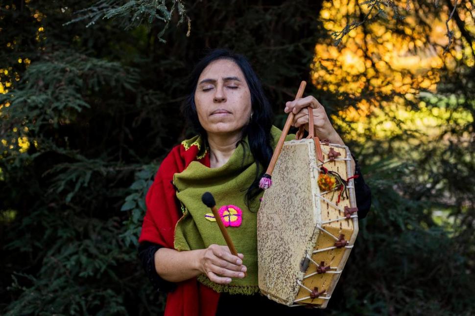 CANTO ANCESTRAL. Miriam García, con su caja. Dice que cuando canta, siente que trasciende el plano de lo real, que conecta con otras frecuencias.