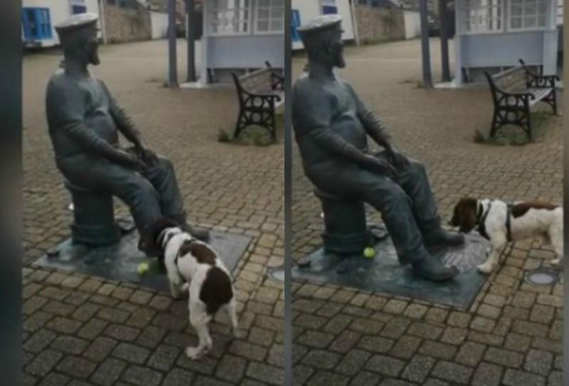 El adorable momento en que un perro intentó jugar a la pelota con una estatua después de confundirla con una persona fue capturado en vídeo por su dueña y viralizado en Internet despertando ternura entre los usuarios.