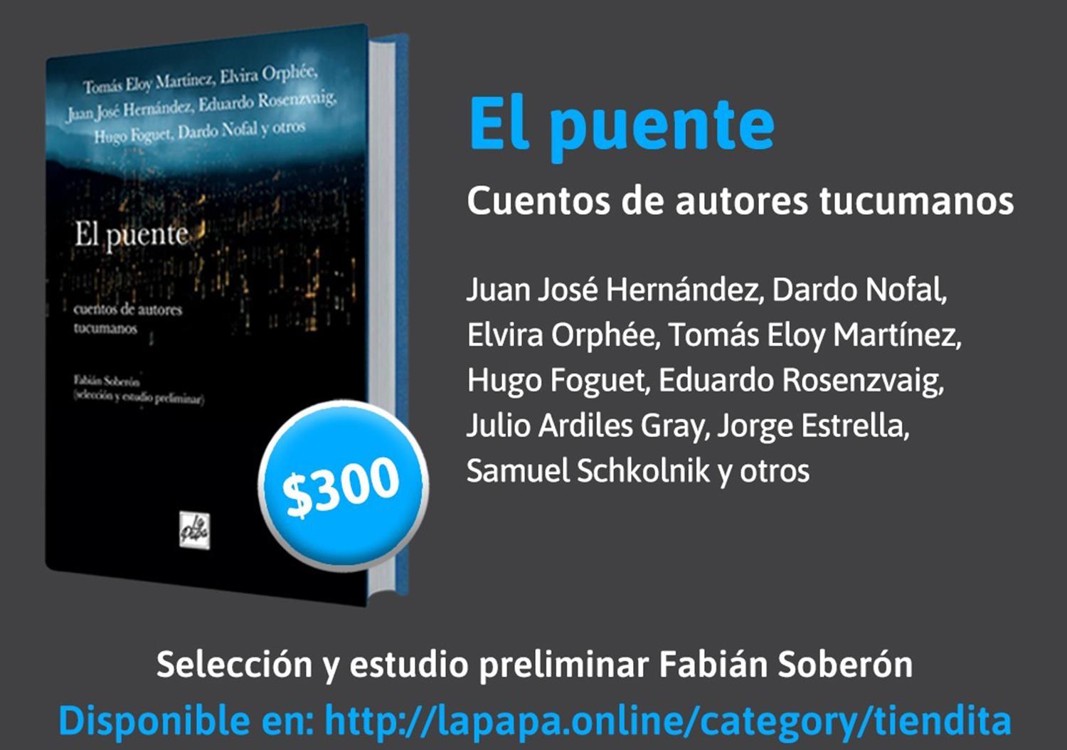 A partir del 1 de agosto estará disponible El puente, un libro con veinticinco cuentos de autores tucumanos. La selección y el estudio preliminar son de Fabián Soberón.