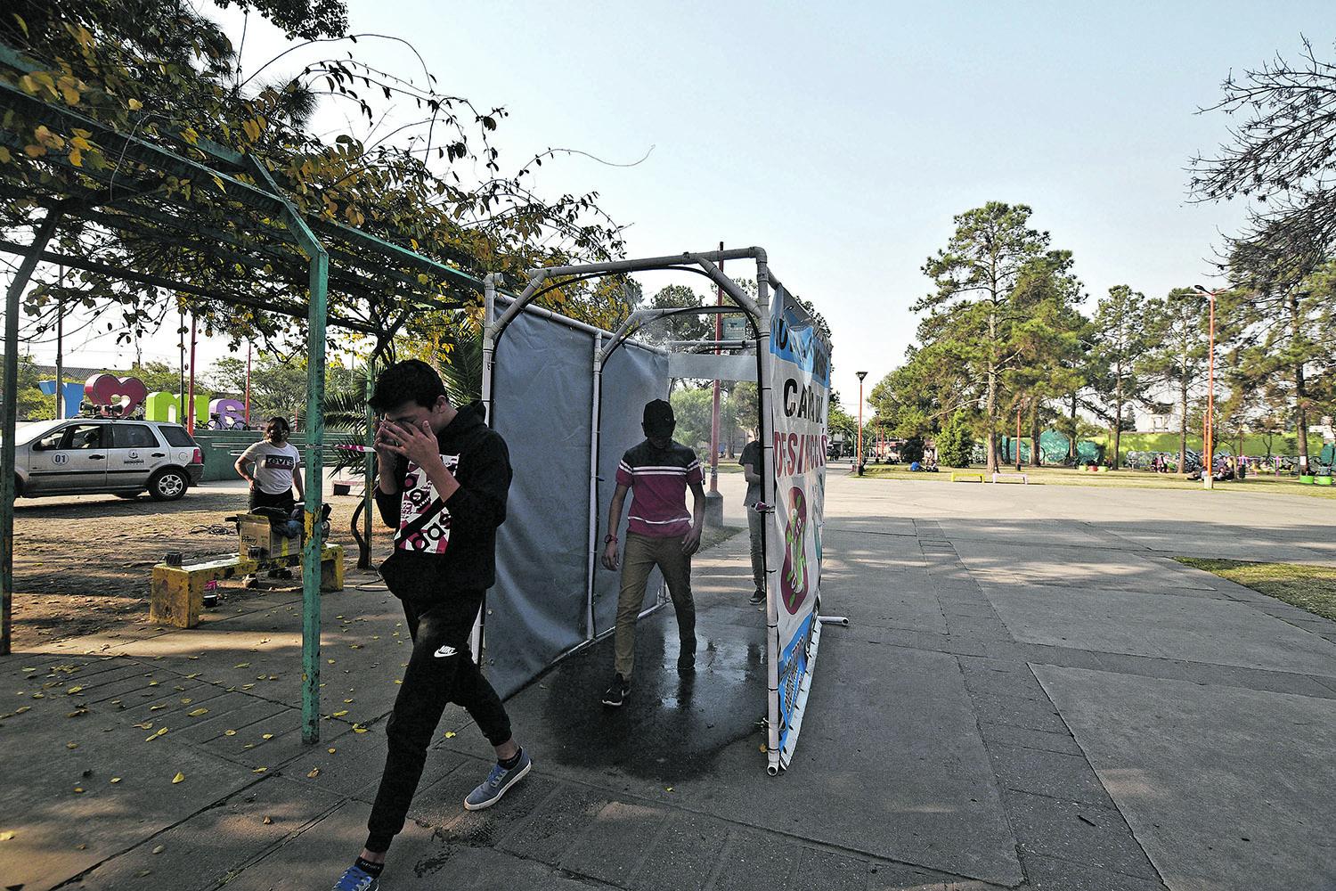 En los paseos públicos se instalaron cabinas de sanitización, puestos con alcohol en gel y personal municipal desinfectó los juegos infantiles. Se marcaron círculos en los cuales no podían permanecer más de 10 personas. Y se instalaron carteles con recomendaciones.