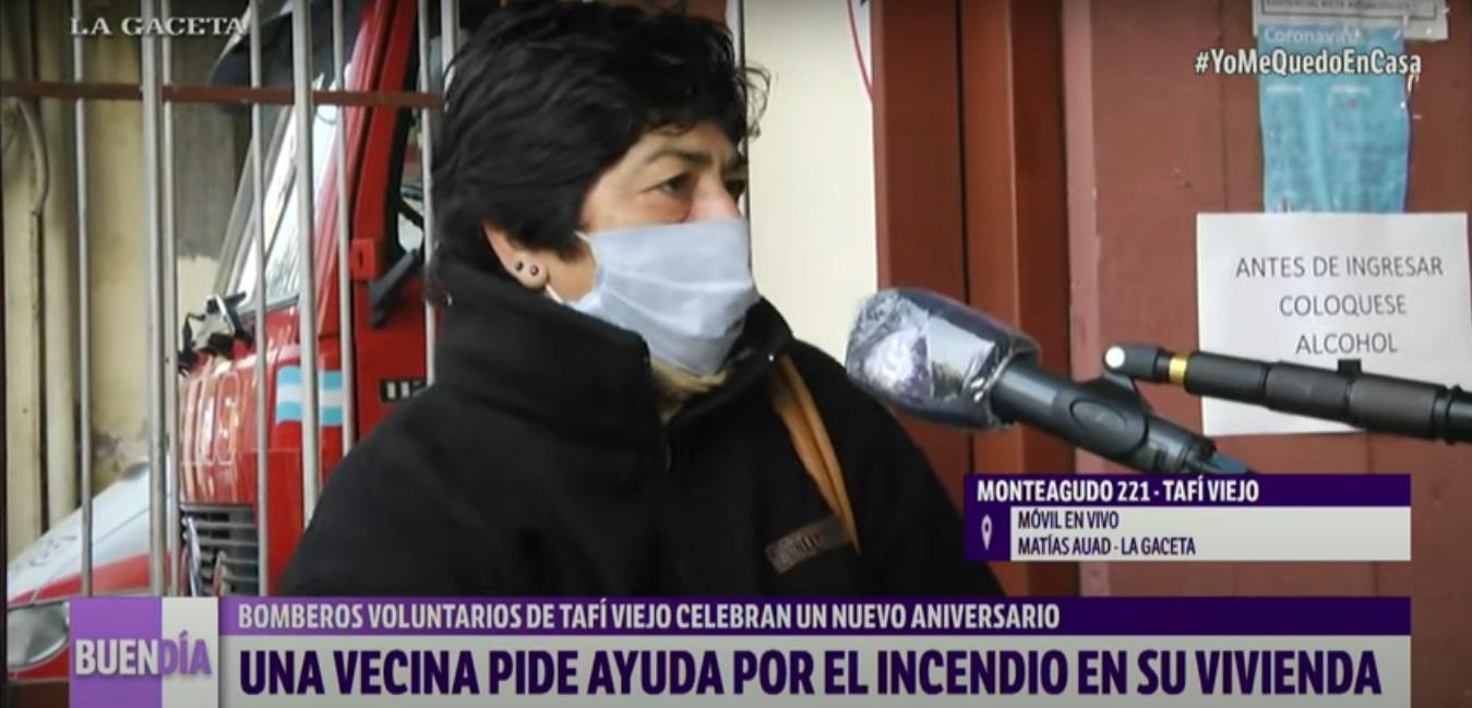 En medio del móvil de “Buen Día” por el aniversario del cuartel de Bomberos Voluntarios de Tafí Viejo, una mujer se presentó en ese lugar y contó que sus tres nietos habían perdido todas sus pertenencias y muebles en un incendio registrado en calle Reconquista al 200. “Tenían dos cuchetas. Se quedaron sin ropita, sin calzado”, se lamentó.