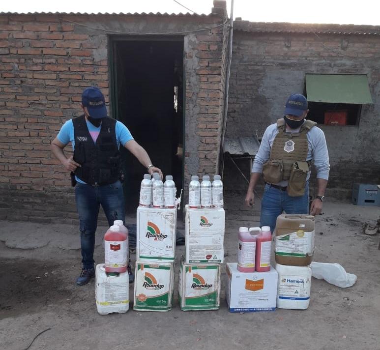 Como resultado de los operativos realizados en Los Ralos, Estación Aráoz, Los Alto de Los Pereyra y Mujer Muerta, se hallaron una bolsa de maíz, cinco cajas de herbicidas de 15 kilos, dos insecticidas de 10 litros, bidones con un total de casi 100 litros de herbicida, un teléfono celular y otros elementos de interés para la causa.