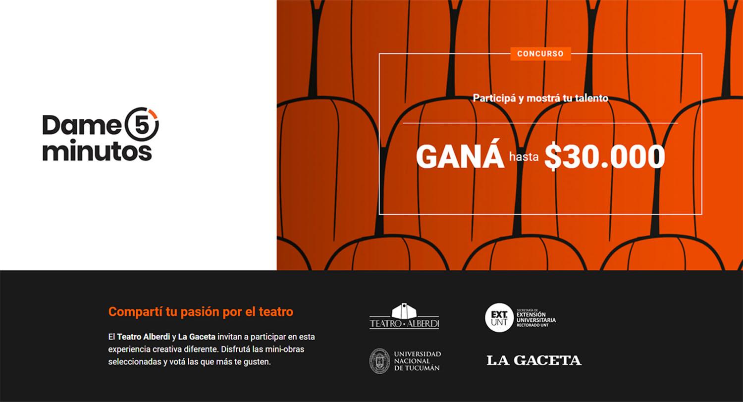 La propuesta que más sufragios consiga entre las 14 presentadas ganará $10.000. Se puede emitir el apoyo una vez por día a tantas obras cortas inéditas como se quiera respaldar y con el único requisito de estar inscripto como usuario de LA GACETA, entrando al enlace https://www.lagaceta.com.ar/dame5min.