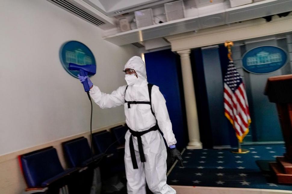 LIMPIEZA. La sala de prensa de la Casa Blanca fue desinfectada antes de recibir a los periodistas. Reuters