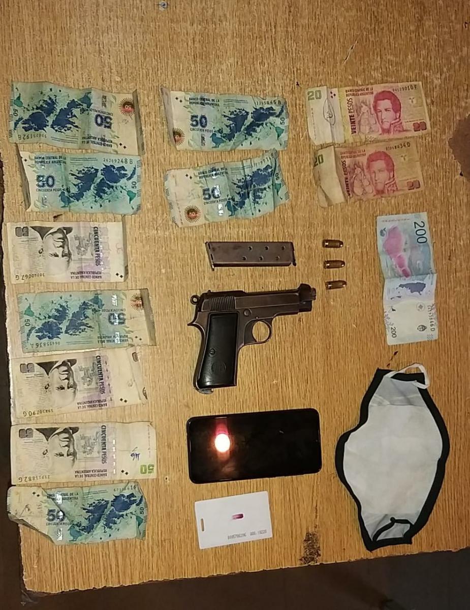 Al requisarlo, descubrieron que llevaba una pistola calibre 9 corto en las manos por lo que le ordenaron que la dejara en el piso para poder reducirlo y requisarlo. En los bolsillos llevaba algo de dinero y un teléfono celular, informó el Comisario Mayor Sergio Sobrecasas, Jefe de la Dirección General de Prevención Ciudadana.