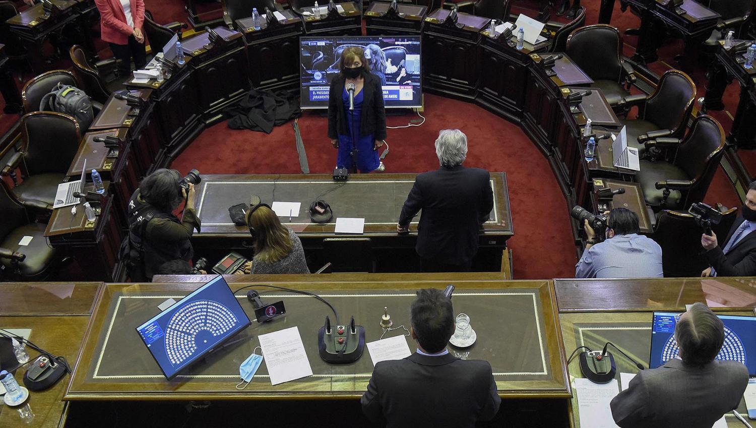 El texto que elaboraron Graciela Camaño (Consenso Federal); Silvia Lospennato (PRO), Miguel Bazze (UCR); Cecilia Moreau y Cristina Alvarez Rodríguez (Frente de Todos), fue votado a mano alzada por todos los integrantes del cuerpo. Los dos representantes de la Izquierda, además, justificaron su voto, en boca de Nicolás del Caño: "¿de qué moral pueden hablar los que le han metido la mano en el bolsillo a los jubilados?".