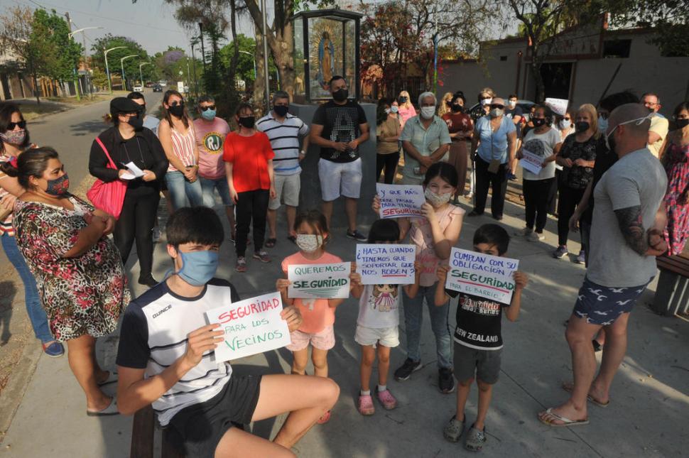 La convocatoria fue a la sombra de un árbol, frente a una gruta de la Virgen del Valle. Los más chicos hicieron carteles de colores con la leyenda “Basta de inseguridad”. Constanza Ingaramo, una de las vecinas que convocó la reunión, destacó: “hoy nos juntamos para plantear este problema y ver si nos dan una solución. No es una marcha, pero el martes a la noche sí marcharemos, si no tenemos una solución hasta entonces”. La joven destacó que desde que pusieron el sistema de alarmas vecinales, los habitantes de ese barrio se acercaron mucho más y tomaron conocimiento (mediante un grupo de Whatsapp) de la cantidad de hechos delictivos que venían sufriendo las distintas familias. “A mí me asaltaron dos veces en la calle; a las 14 y a las 16 horas fueron los ataques; la tercera vez ingresaron a mi casa a robar”, añadió Ingaramo. Los vecinos remarcaron el temor a que los niveles de violencia aumenten.