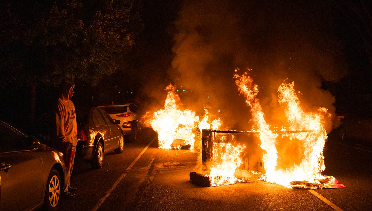 "Lo que veo es terrible, y francamente, el alcalde o quienquiera que sea que autoriza a las personas a manifestar y a saquear sin detenerlas es igual de terrible", dijo Trump, en medio de una gira electoral.