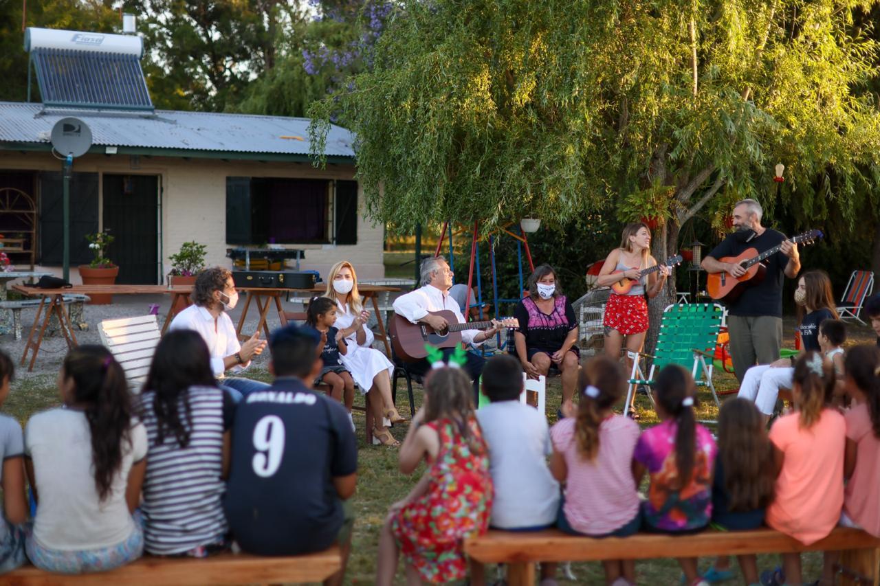 El presidente Alberto Fernández en la víspera de Navidad el hogar Ángel Azul de la localidad de Las Tahonas, Punta Indio, en la zona sur del conurbano bonaerense, donde saludó a los chicos. Allí, el referente del Frente de Todos destacó la labor de Elena Vita, que es quien contiene y cuida a una treintena de menores que están en guarda judicial.