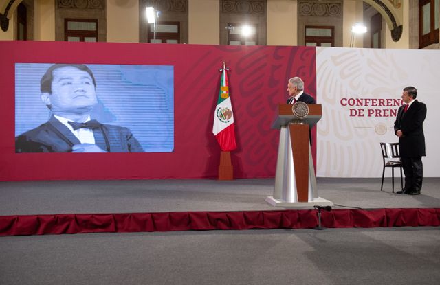 HOMENAJE. Andrés López Obrador, presidente de México, despide ayer al artista (arriba, izquierda). fotos reuters