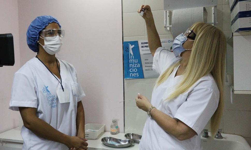 EN EL KIRCHNER. La ministra Chahla supervisó ayer la vacunación.