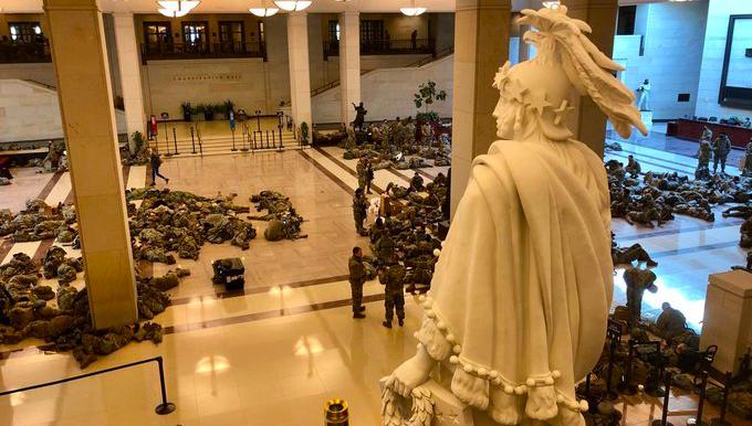 ALERTAS. El Departamento de Defensa de Estados Unidos ordenó el despligue de fuerzas de seguridad para proteger el Capitolio, ante versiones de manifestaciones, por parte de adeptos del presidente, Donald Trump. IMAGEN TOMADA DE LA CUENTA DE TWITTER DE LINDSAY WISE (@lindsaywise), PERIODISTA DE "THE WALL STREET JOURNAL".