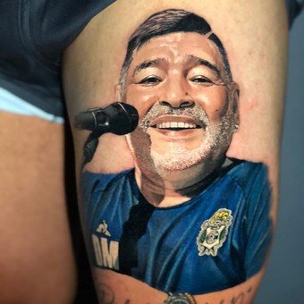 El volante de Gimnasia de La Plata, Patricio Monti, en homenaje a su ídolo y ex técnico, Diego Armando Maradona, decidió tatuarse en su muslo izquierdo una foto realista del “Diez”. El momento retratado es de una conferencia de prensa, cuando “Pelusa” era DT del club, acompañado de la frase “Palabras del 10”. Tan increíble fue, que recibió la respuesta de Dalma: “Bueno, ¡AMO ESTO! Es impresionante”, dijo en sus redes.
