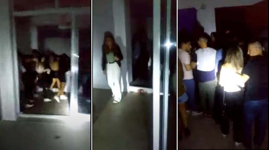 Un video, en el momento preciso en que llega la policía, se volvió viral y llegó a la televisión nacional. TN mostró imágenes de jóvenes, intentando huir, apretados, por los pasillos de la vivienda.