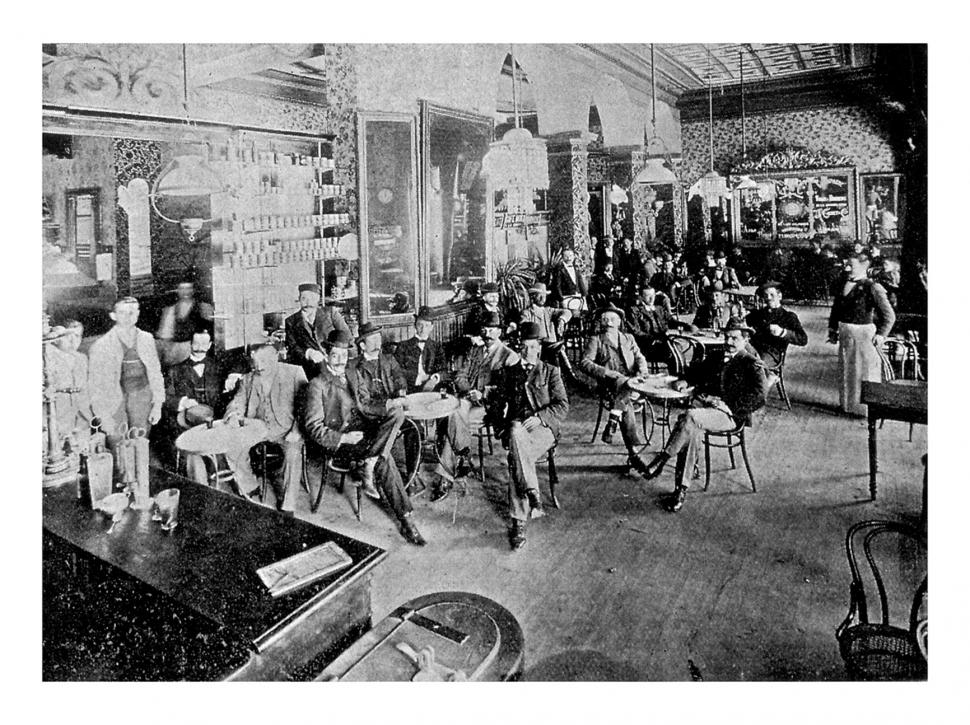 Local, de enorme éxito entre el público masculino, anunciaba sus servicios de “gran surtido de bombones, chocolates y dulces de todas clases - Casa especial en cocktails, café y chocolates - Vinos finos de Oporto, Jerez, Málaga, etc.- cigarrillos habanos de las mejores marcas”.