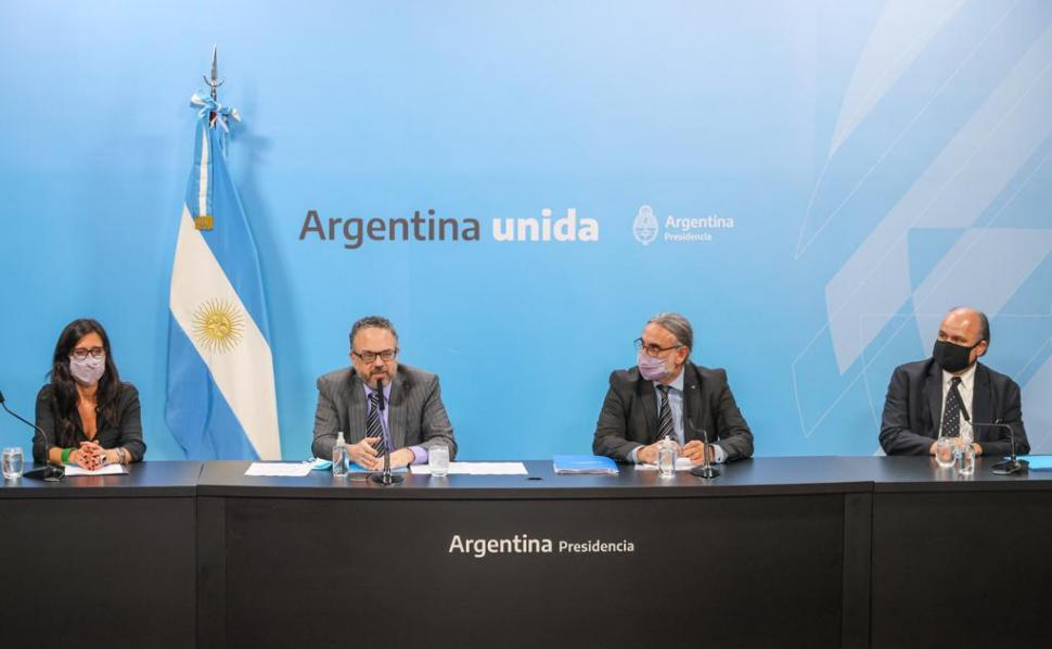 ANUNCIOS. Matías Kulfas, ministro de Desarrollo Productivo, junto con Basterra y Español, dan a conocer detalles del cierre de las tratativas.