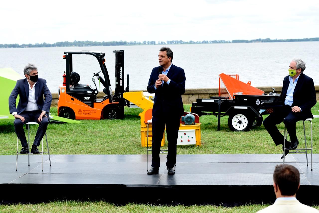 BUENOS AIRES.- El presidente de la Cámara de Diputados, Sergio Massa, participó del encuentro en el que el viceministro de Ambiente y Desarrollo Sostenible, Sergio Federovisky y el intendente de Chascomús, Javier Gastón, formalizaron la entrega de maquinarias y equipamiento por parte de la cartera que conduce Juan Cabandié para instalar una planta de tratamiento de los residuos urbanos y construir un Ecoparque en esa localidad, con el objetivo de terminar con el basural a cielo abierto.