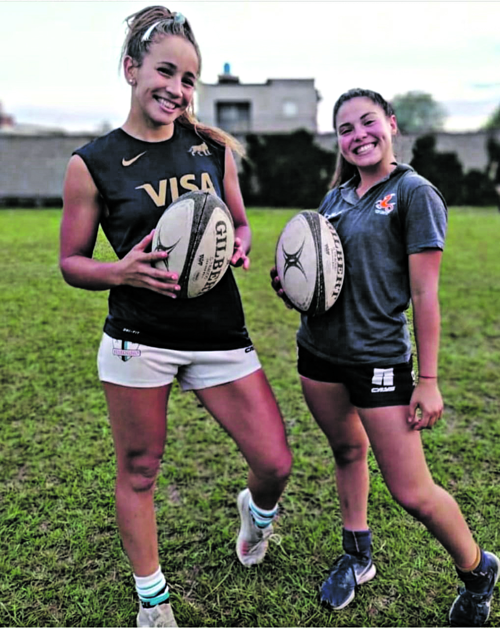DEL SUR. Andrea Moreno y Ángela Juárez, dos de las cuatro jugadoras de Alberdi Rugby en la Academia.