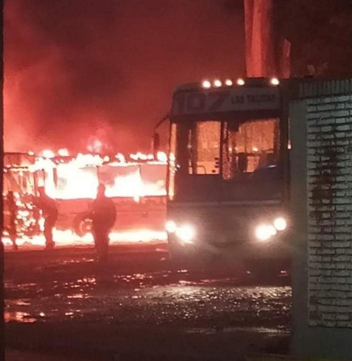 EN LLAMAS. Una unidad de la línea 7 alcanzada por el fuego. Foto: Policía de Tucumán