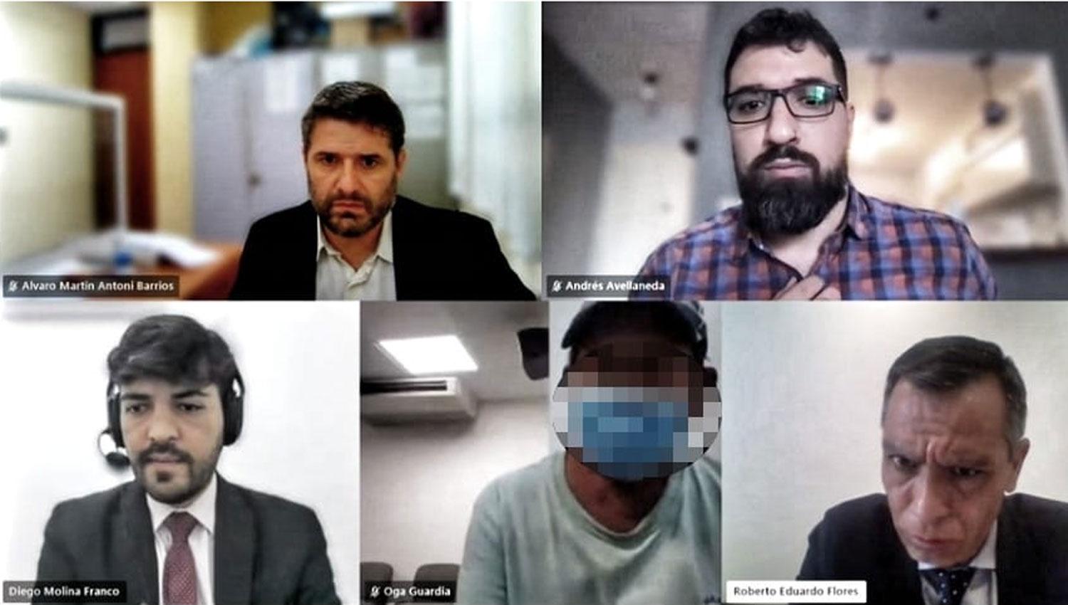 AUDIENCIA VIRTUAL. El acusado, los abogados y el fiscal de la causa mantuvieron ayer un encuentro en el que se formularon los cargos. FOTO GENTILEZA MINISTERIO PÚBLICO FISCAL