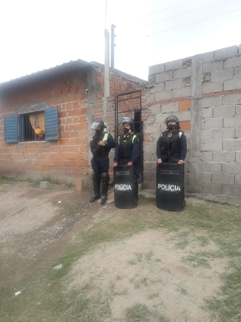 GUARDIA. Los efectivos en la vivienda donde detuvieron a “Guly” Soria.