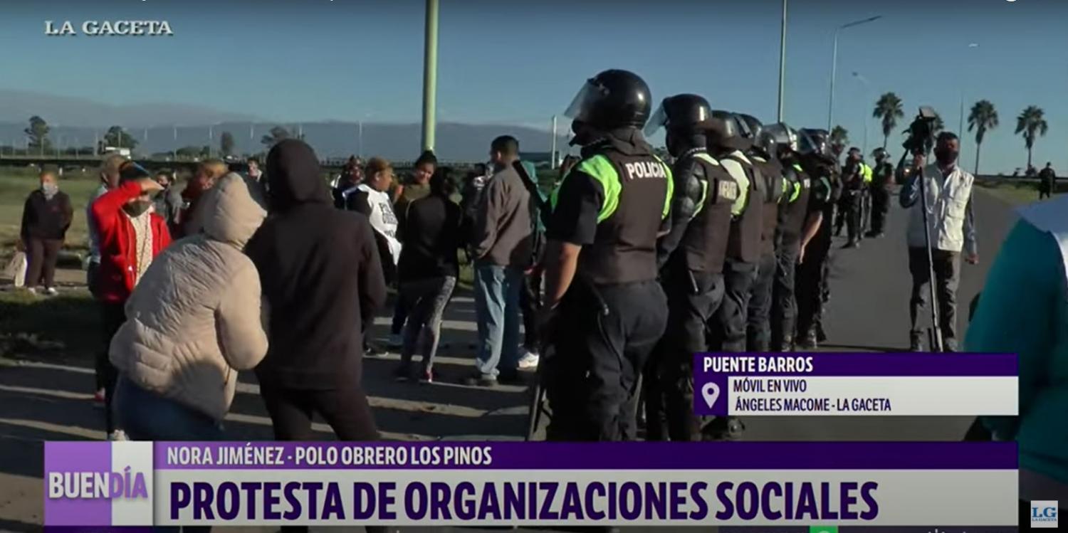 En el puente Barros se registraron momentos de tensión durante un incidente entre los manifestantes del Polo Obrero de barrio Los Pinos y efectivos de la Policía. La organización social acusó a la fuerza de seguridad de reprimir a las personas que protestaban en el lugar; mientras que fuentes policiales remarcaron que habían intervenido para evitar el corte del tránsito.