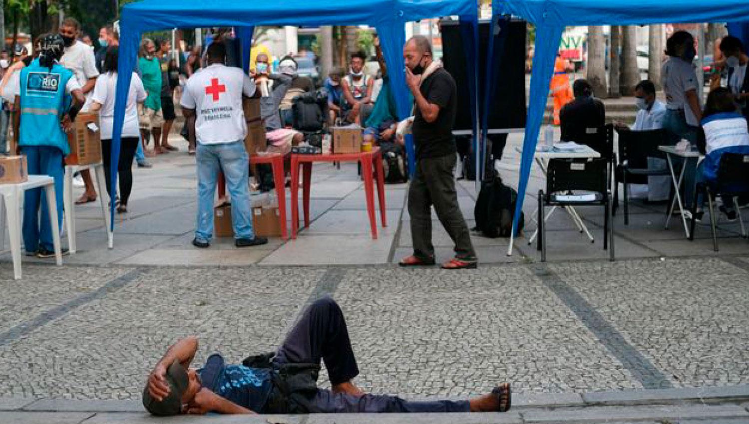 EN LA CALLE. Las campañas de vacunación contra la covid-19 se concretan en el centro de Río de Janeiro. REUTERS