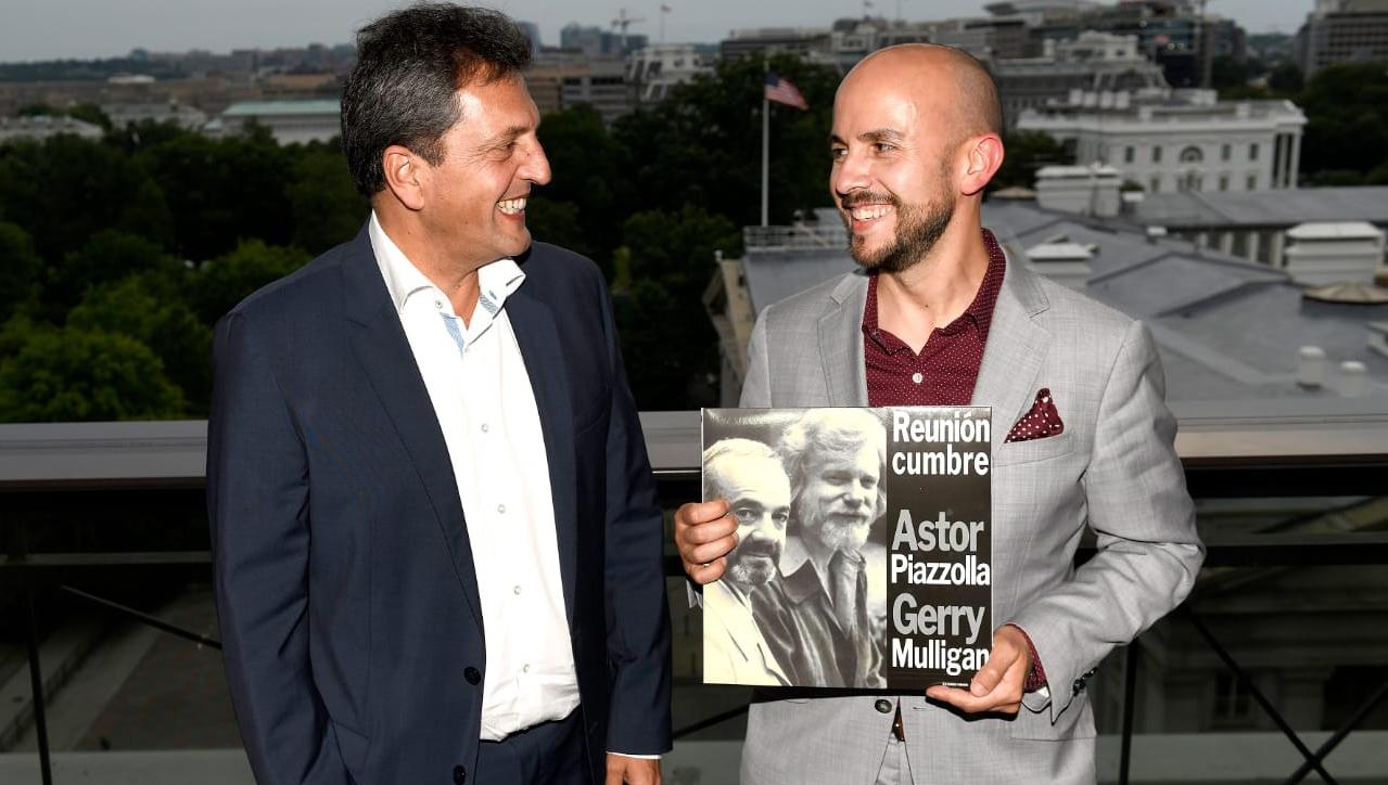 REUNIONES. El titular de la Cámara de Diputados, Sergio Massa, se entrevistó en Estados Unidos con Juan Sebastián González, un asesor del presidente de ese país, Joe Biden, y le regaló un disco de Astor Piazzola.